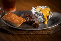 8 oz Specialty Steak served with Baked Potato topped with our Cheese Sauce and Garlic Bread